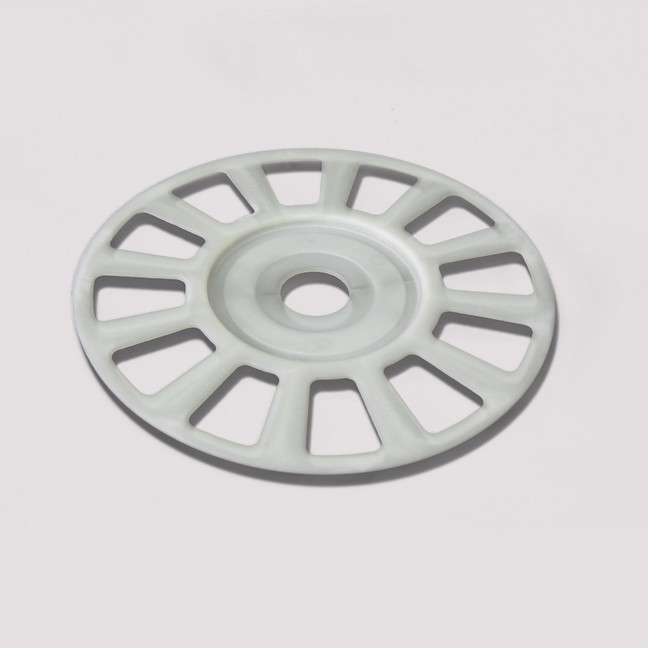 spezieller Teller Ø=90mm zur Druckminderung bei Verdübelung von Mineralwoll MV 036 Dämmplatten, Alternativ mit normalem Dübelteller Ø=60mm durch das Gewebe dübeln.
